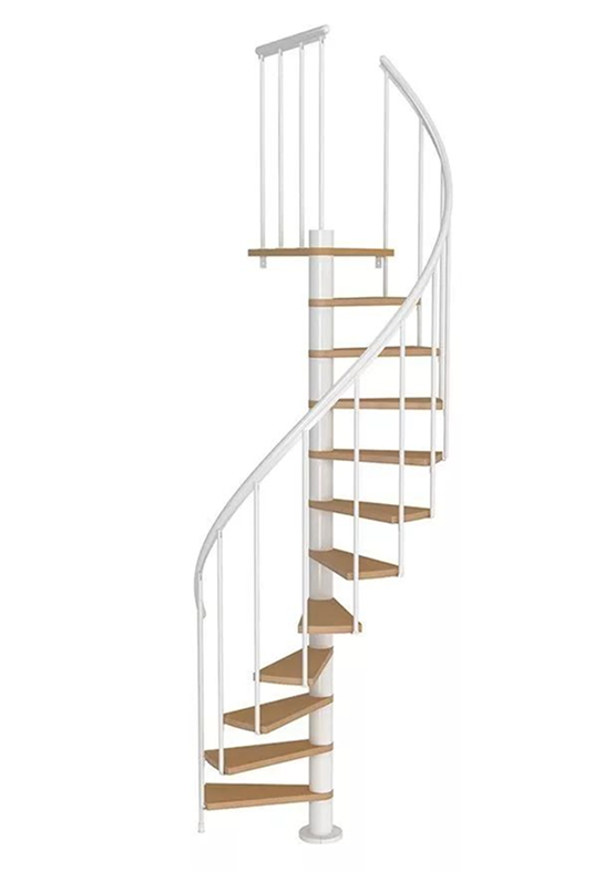 Конструкция с проекционным контуром в виде окружности, которая опирается на центральный столб и за счёт коротких ступеней, расположенных по кругу, требует минимум места. Она состоит из центральной опоры, к которой по спирали под определённым углом крепятся ступени и перила